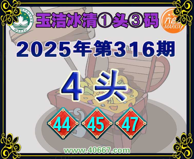 316期:【玉洁冰清】 🗡①头③码🗡【4头主:44.45.47】开:00准