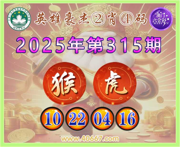 315期:『英雄豪杰』②肖④码✨【猴虎】【10.22.04.16】开:00准
