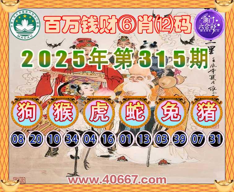315期:『百万钱财』⑥肖⑿码⚽【狗猴虎蛇兔猪】开:00准