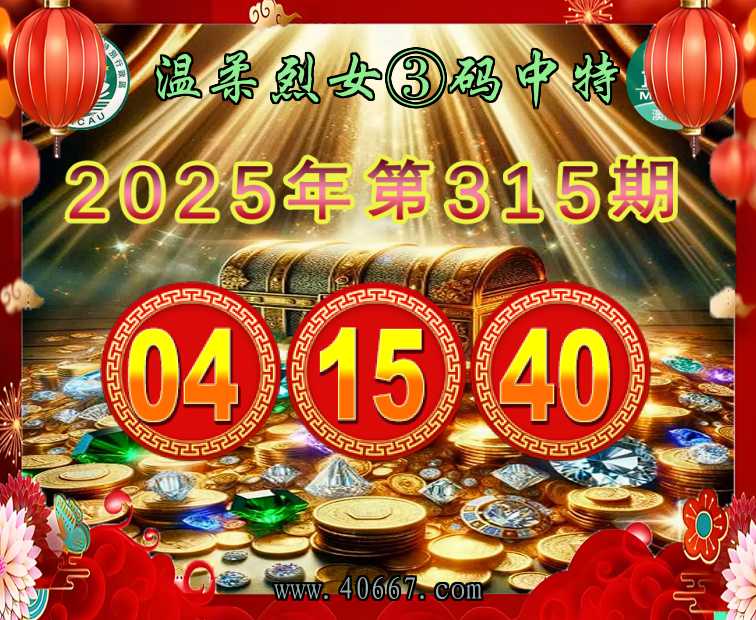 315期:【温柔烈女】 🥖③码中特🥖【04.15.40】开:04准上榜高手