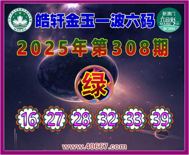 308期:《皓轩金玉》一波六码⌚【绿波】开:兔39