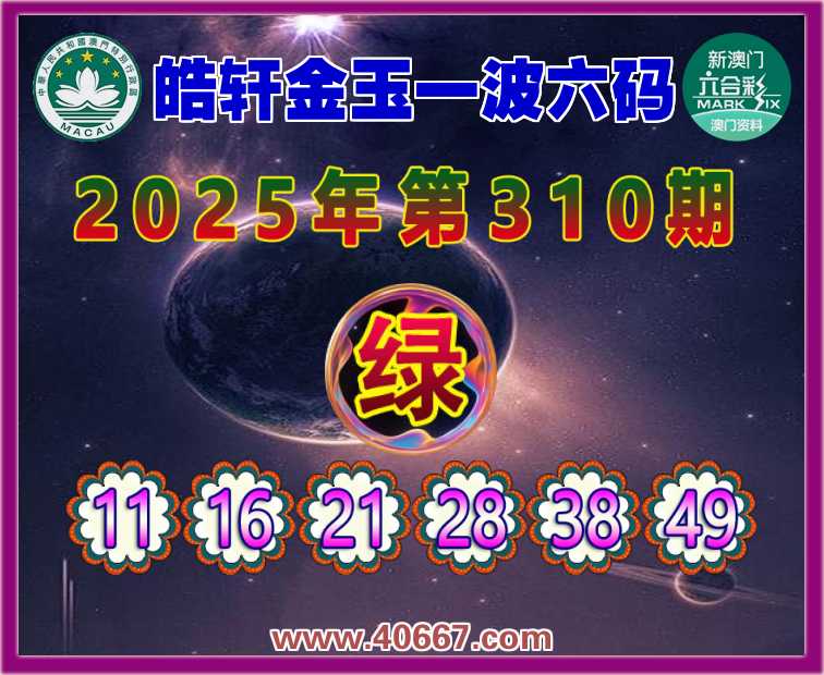310期:《皓轩金玉》一波六码⌚【绿波】开:虎16