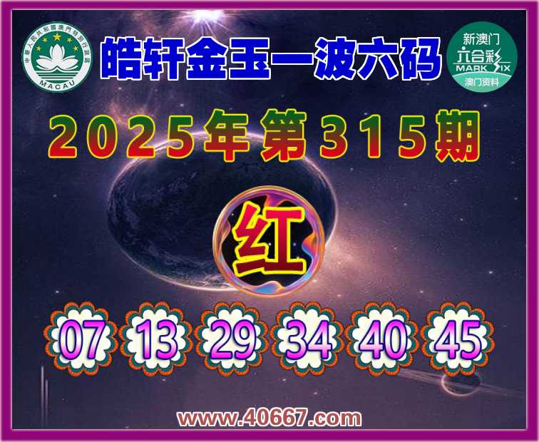 315期:《皓轩金玉》一波六码⌚【红波】开:00准