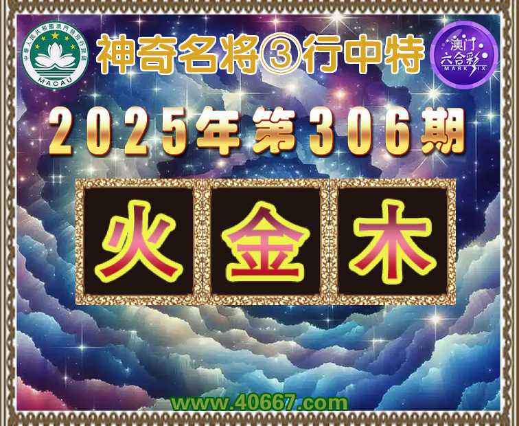 306期:『神奇名将』 👛③行中特👛【.金.木】开:火17