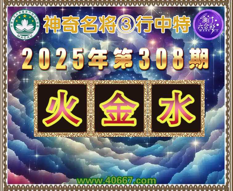 308期:『神奇名将』 👛③行中特👛【.金.水】开:火39