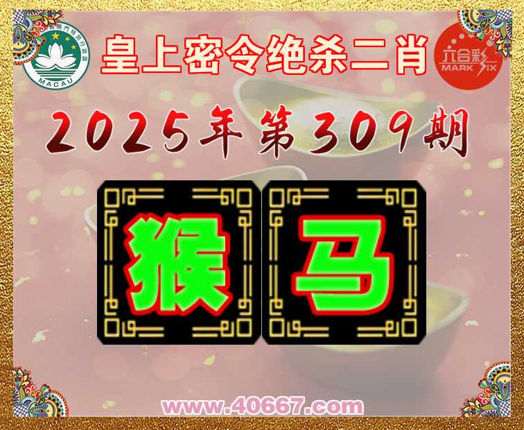 309期:【皇上密令】 👚绝杀二肖👚【猴.马】开:鼠06