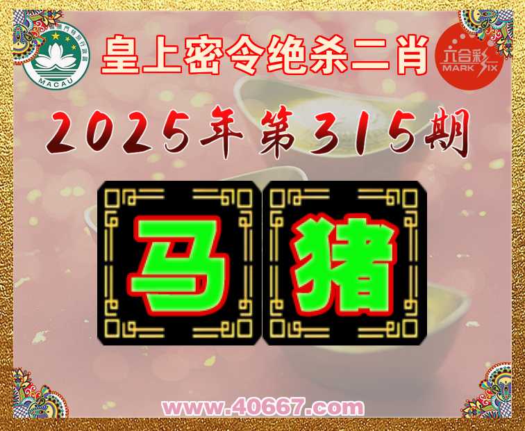 315期:【皇上密令】 👚绝杀二肖👚【马.猪】开:00准
