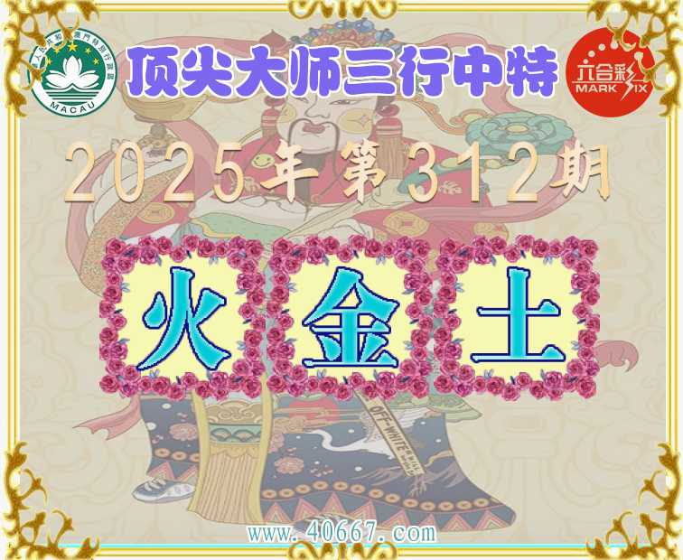312期:【顶尖大师】 🍅三行中特🍅【火.金.土】开:水14