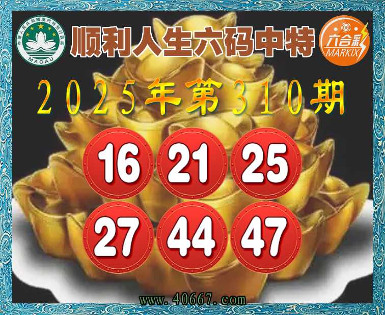 310期:《顺利人生》六码中特⚽【16.21.25.27.44.47】开:16