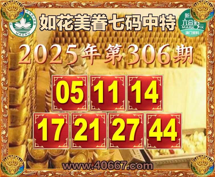 306期:【如花美眷】  ♣️七码中特 ♣️【05.11.14.17.21.27.44】开:17