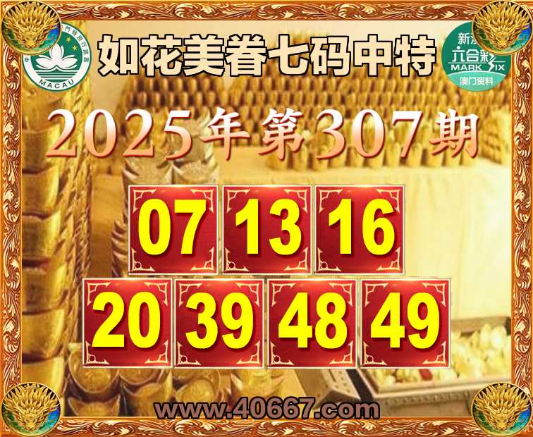 307期:【如花美眷】  ♣️七码中特 ♣️【07.13.16.20.39.48.49】开:20
