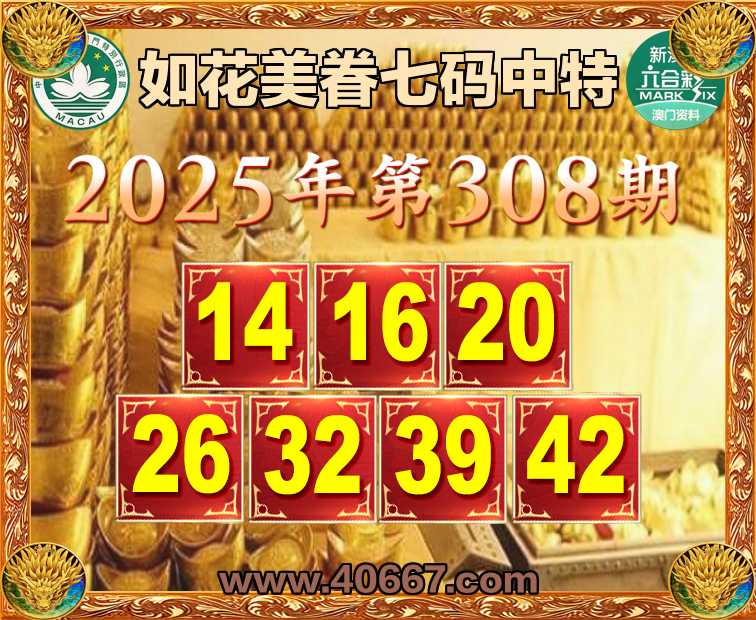 308期:【如花美眷】  ♣️七码中特 ♣️【14.16.20.26.32.39.42】开:39