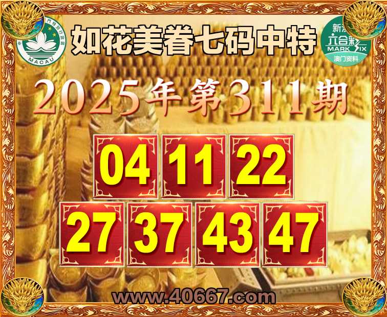 311期:【如花美眷】  ♣️七码中特 ♣️【04.11.22.27.37.43.47】开:37准上榜高手