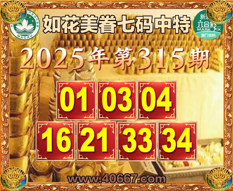 315期:【如花美眷】  ♣️七码中特 ♣️【01.03.04.16.21.33.34】开:00准