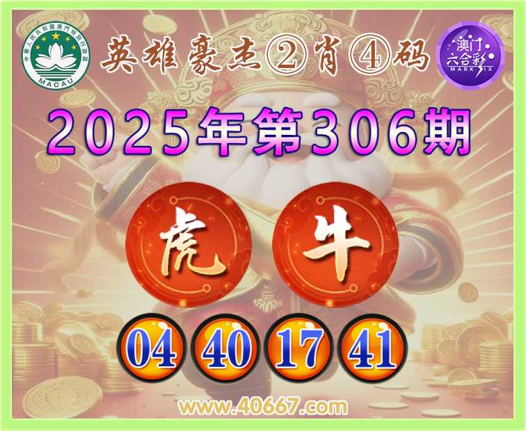 306期:『英雄豪杰』②肖④码✨【虎】【04.40.17.41】开:牛17