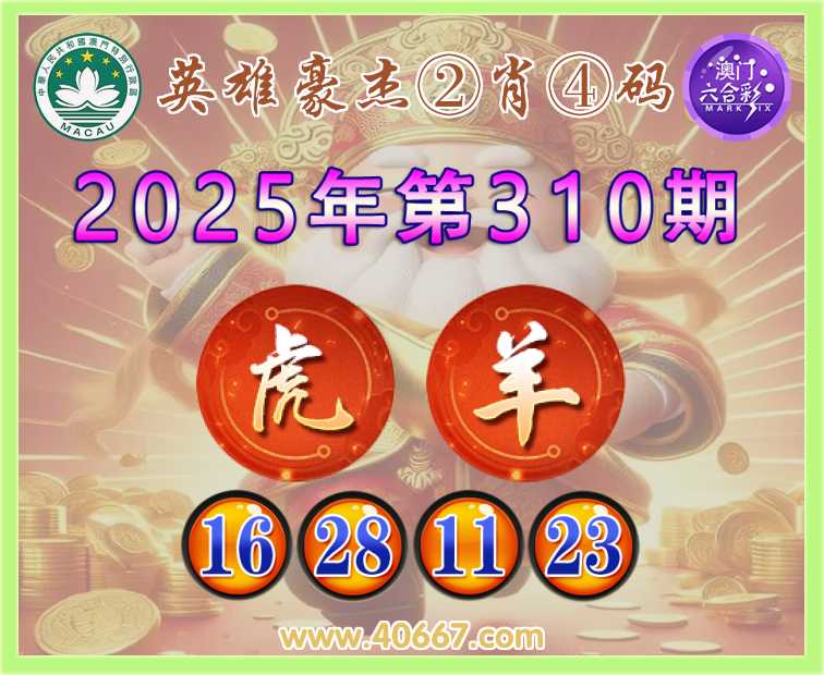 310期:『英雄豪杰』②肖④码✨【羊】【16.28.11.23】开:虎16