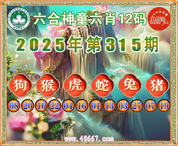 315期:六合神童【六肖12码】〓 关注中奖已公开