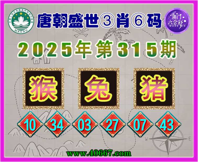 315期:《唐朝盛世》 🚡③肖⑥码🚡【猴兔猪】开:00准