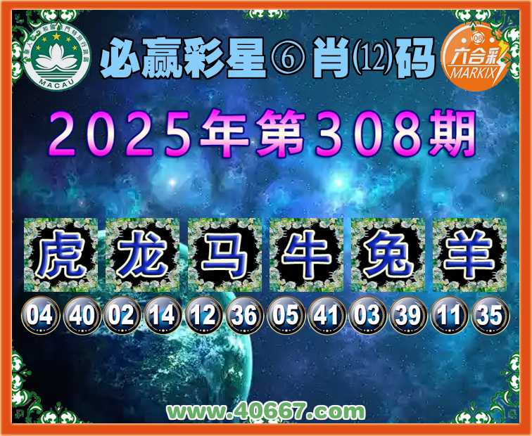 308期:『必赢彩星』 🥉⑥肖⑿码🥉【虎龙马牛羊】开:兔39