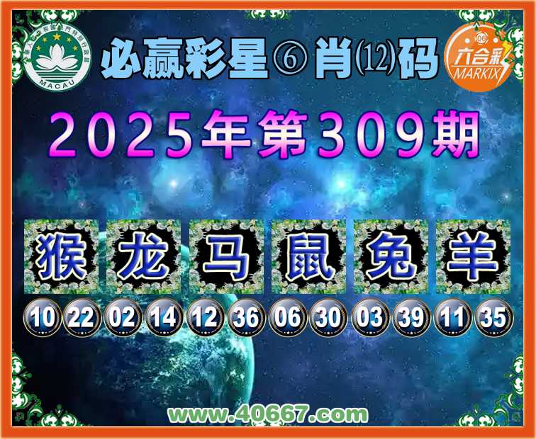 309期:『必赢彩星』 🥉⑥肖⑿码🥉【猴龙马兔羊】开:鼠06
