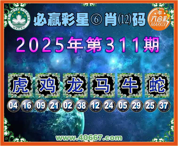 311期:『必赢彩星』 🥉⑥肖⑿码🥉【虎鸡龙马牛】开:蛇37