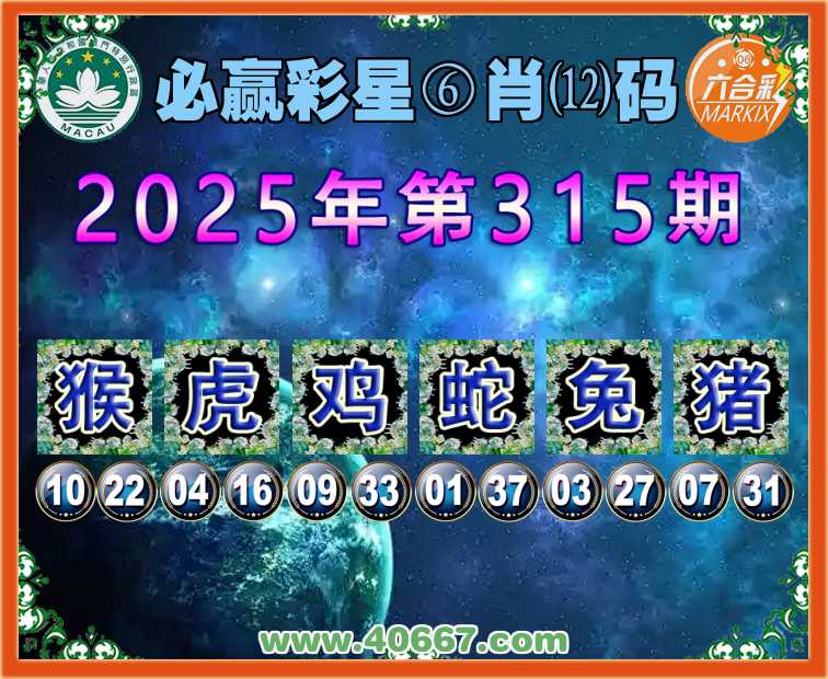 315期:『必赢彩星』 🥉⑥肖⑿码🥉【猴虎鸡蛇兔猪】开:00准