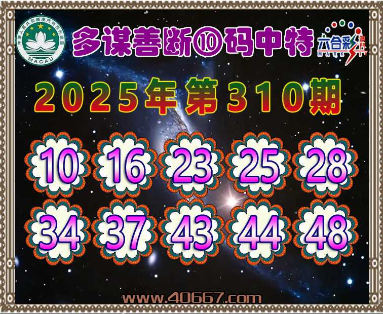 310期:【多谋善断】 🥩⑩码中特🥩开:16