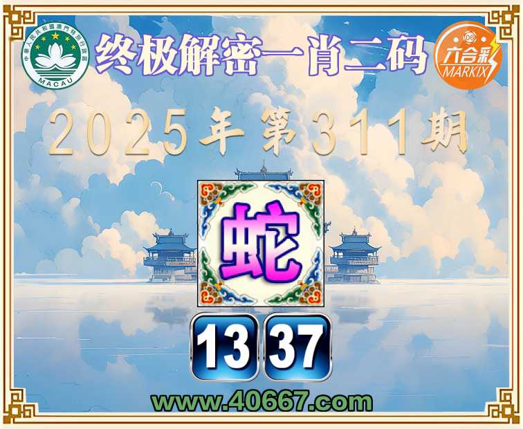 311期:『终极解密』 🏄‍♀️一肖二码🏄‍♀️【】【13.37】开:蛇37