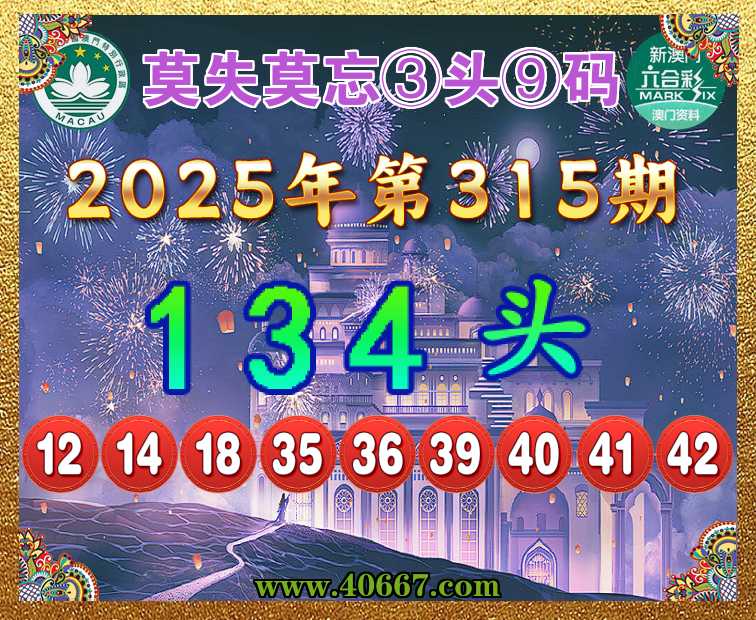 315期:『莫失莫忘』 🪢③头⑨码🪢【134头】开:00准