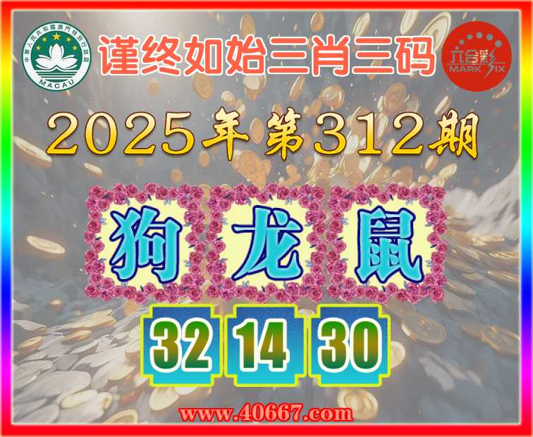 312期: 🥽『谨终如始』 🥽三肖三码🥽【狗鼠】【32.14.30】开:龙14