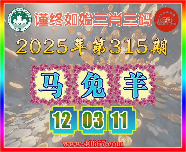 315期: 🥽『谨终如始』 🥽三肖三码🥽【马兔羊】【12.03.11】开:00准
