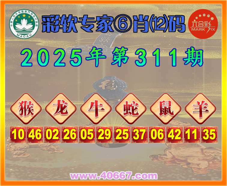 311期:〖彩软专家〗 🧦⑥肖⑿码🧦【猴龙牛鼠羊】开:蛇37