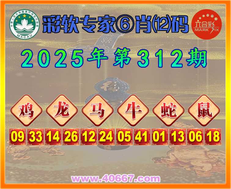 312期:〖彩软专家〗 🧦⑥肖⑿码🧦【鸡马牛蛇鼠】开:龙14