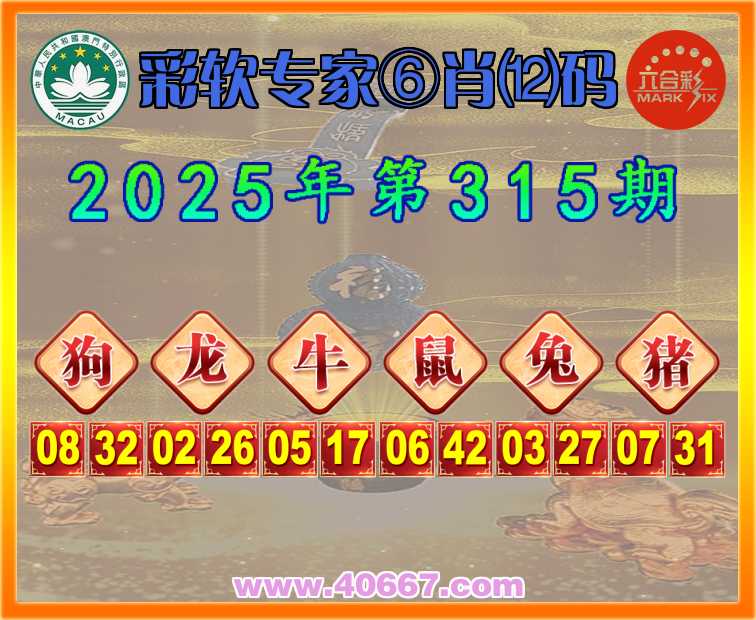 315期:〖彩软专家〗 🧦⑥肖⑿码🧦【狗龙牛鼠兔猪】开:00准