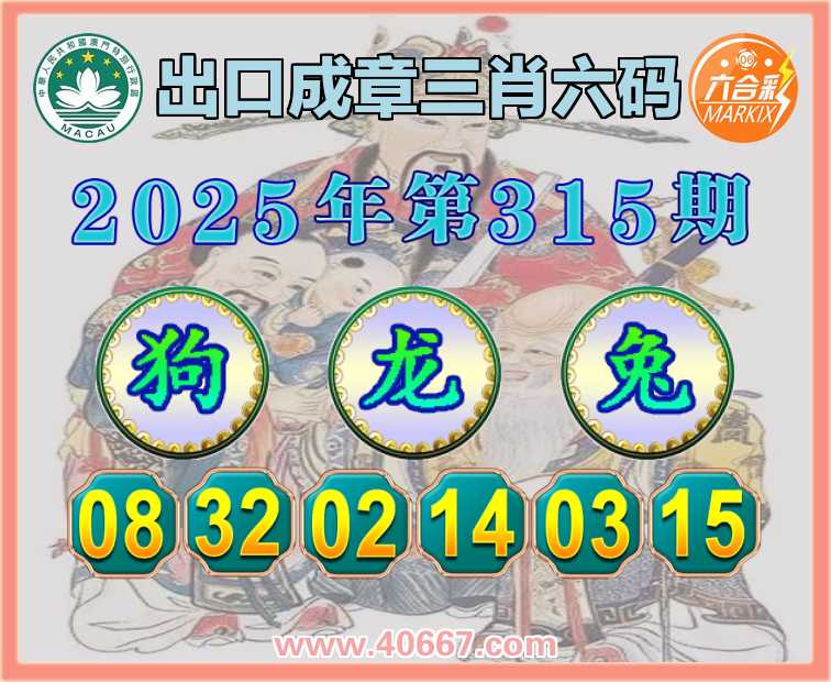 315期:『出口成章』 🎀三肖六码🎀【狗龙兔】开:00准