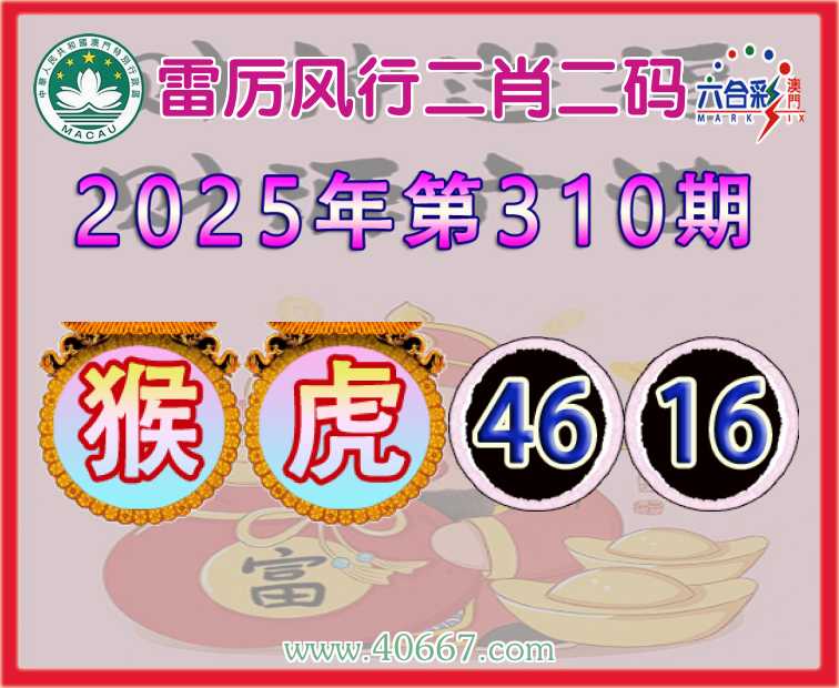 310期: ☘️『雷厉风行』 ☘️二肖二码☘️【猴】【46.16】开:虎16