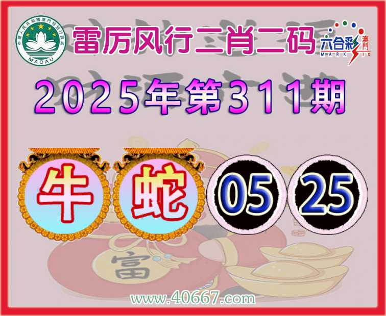 311期: ☘️『雷厉风行』 ☘️二肖二码☘️【牛】【05.25】开:蛇37