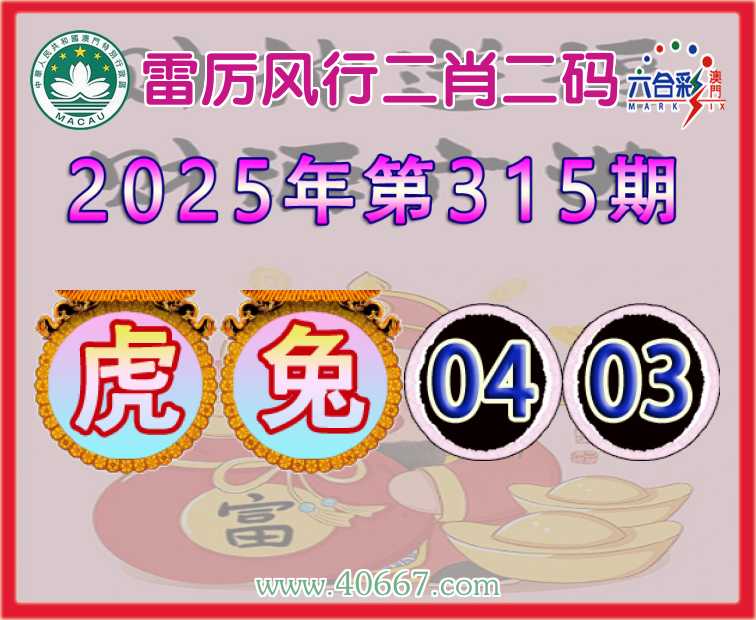 315期: ☘️『雷厉风行』 ☘️二肖二码☘️【虎兔】【04.03】开:00准