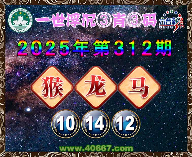 312期:『一世浮沉』 🍏③肖③码🍏【猴马】【10.14.12】开:龙14