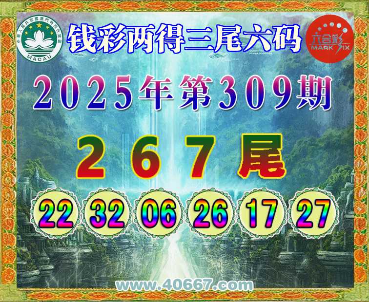 309期:【钱彩两得】 👑三尾六码👑【267尾】开:06