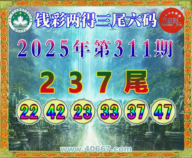 311期:【钱彩两得】 👑三尾六码👑【237尾】开:37
