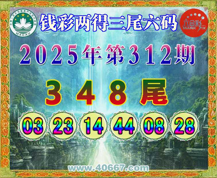 312期:【钱彩两得】 👑三尾六码👑【348尾】开:14