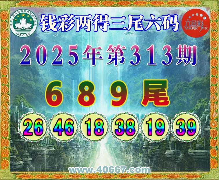313期:【钱彩两得】 👑三尾六码👑【689尾】开:38