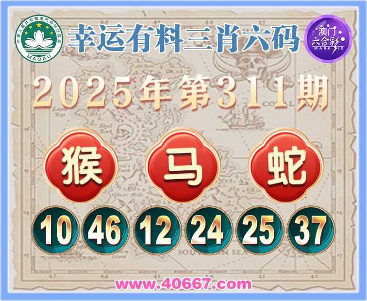 311期:《幸运有料》 🥓三肖六码🥓【猴马】开:蛇37