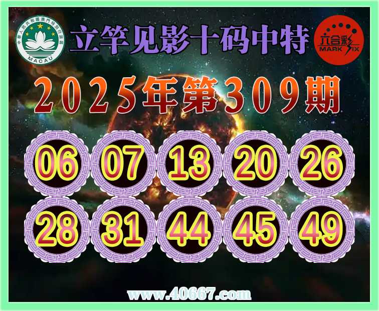 309期:『立竿见影』 🏄‍♀️十码中特🏄‍♀️开:06