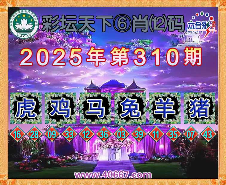 310期:〖彩坛天下〗 🎖️⑥肖⑿码🎖️【鸡马兔羊猪】开:虎16